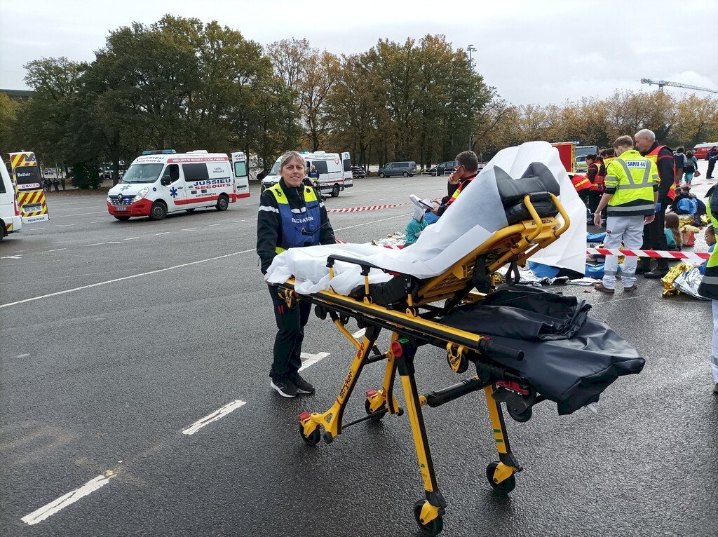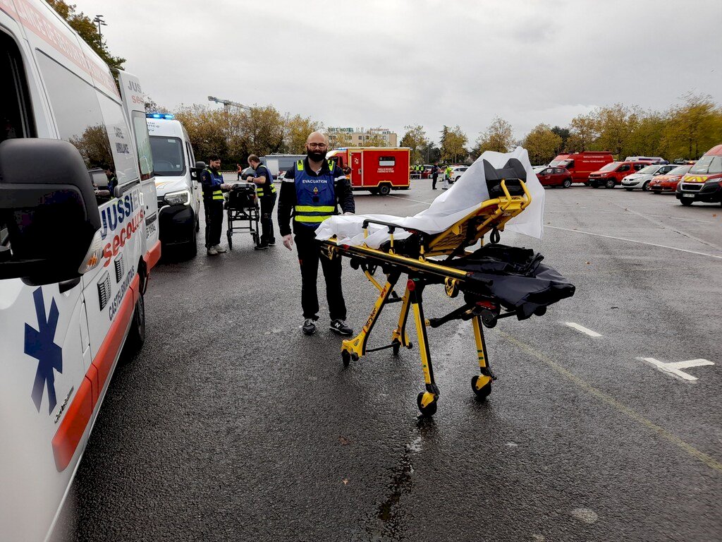 Parmi les corps de métier mobilisés, on retrouve les forces de l'ordre, le RAID, GIGN, BRI, pompiers, SAMU mais aussi les ambulanciers pour la prise en charge et l'évacuation des blessés. Maillons indispensables de la chaine des soins, Alexis, Infirmier-Ambulancier Diplômé d'État et Marina, Ambulancière Diplômée d’État ont pu représenter le secteur Nord Loire 44 de JUSSIEU secours pour cet exercice NOVI.